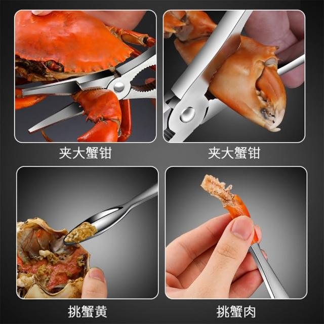 吃蟹工具組 一組 螃蟹夾 龍蝦勾 勺子 304餐具(螃蟹鉗*1+螃蟹針*1+盒子*1)