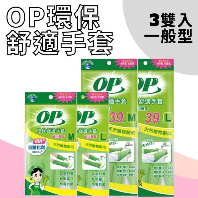 OP環保舒適手套 3雙入 洗碗手套(S M L 家事手套 耐用強化 天然手套)