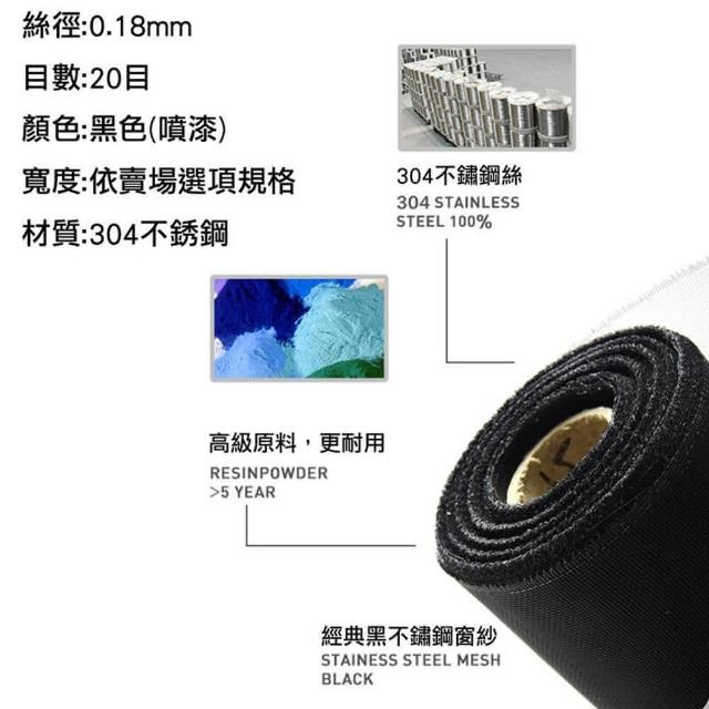 美升不銹鋼紗窗網 整捲售 20目2尺寬(黑色 SUS304 紗網 紗門網)