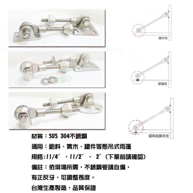 美升方形雨棚拉桿 不鏽鋼鋼304拉桿(1對1壁座式 角形雨棚拉桿)