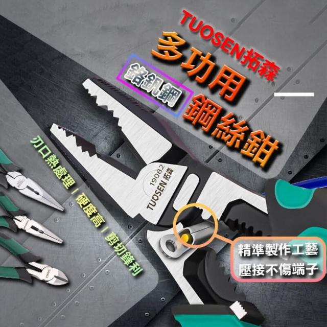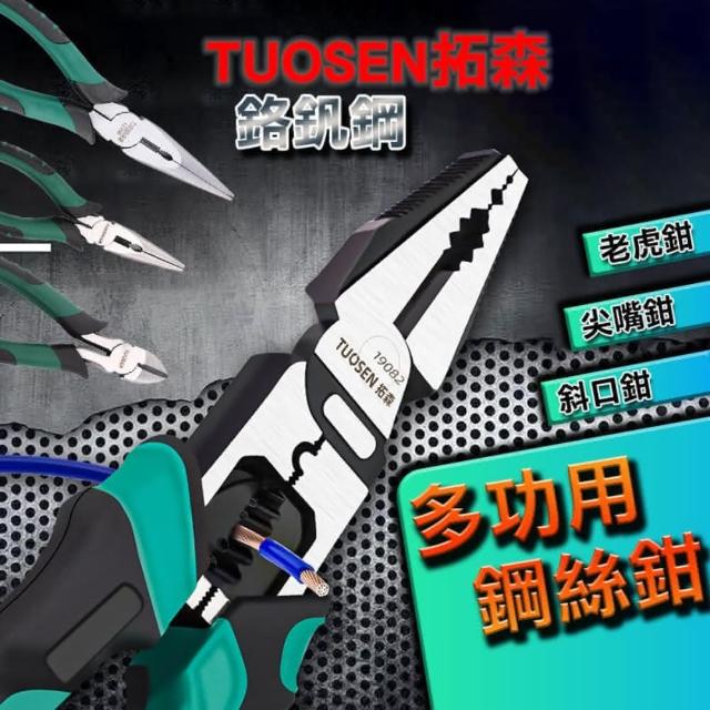 拓森 TUOSEN9吋 多功能鋼絲鉗(CR-V鉻釩鋼 剝線孔設計)