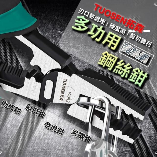 拓森 TUOSEN9吋 多功能鋼絲鉗(CR-V鉻釩鋼 剝線孔設計)