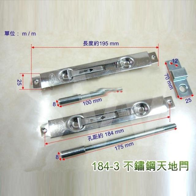 美升鋁門用天地閂 鋅合金防盜鎖 上下栓(195×25mm 門閂 暗栓門鎖)