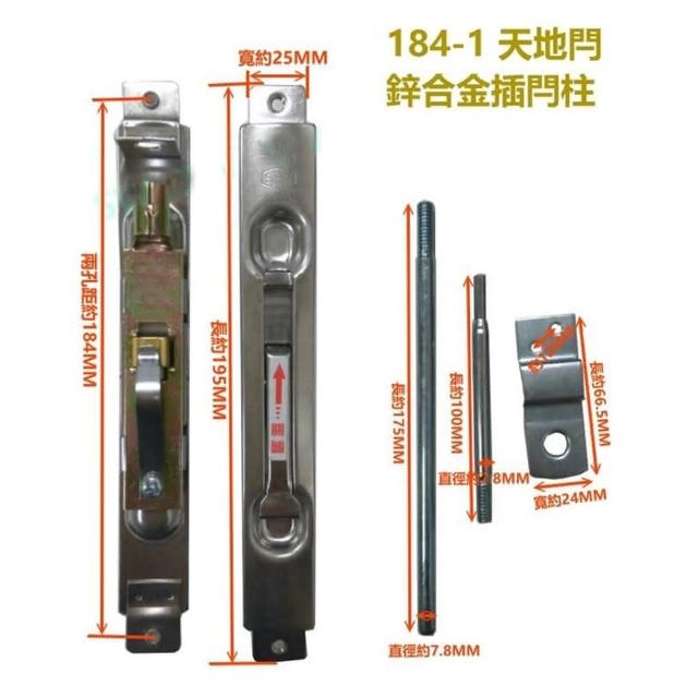 美升鋁門用天地閂 鋅合金防盜鎖 上下栓(195×25mm 門閂 暗栓門鎖)