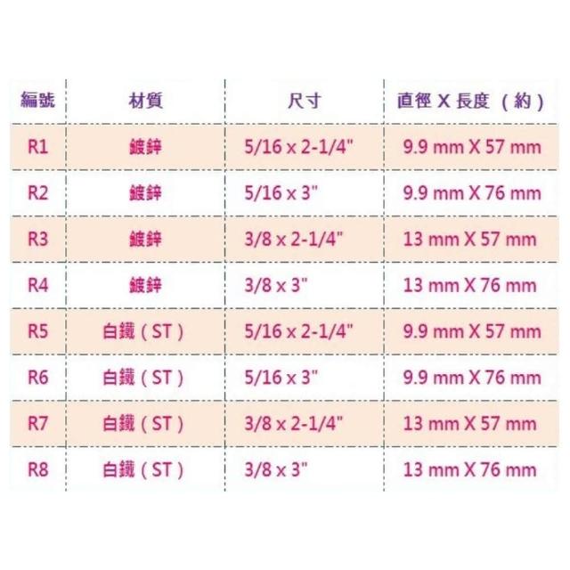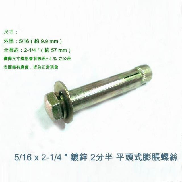 2分半 平頭膨脹螺絲 50入 鍍鋅(5/16 x 2-1/4〞 平頭式壁虎 固定螺絲)