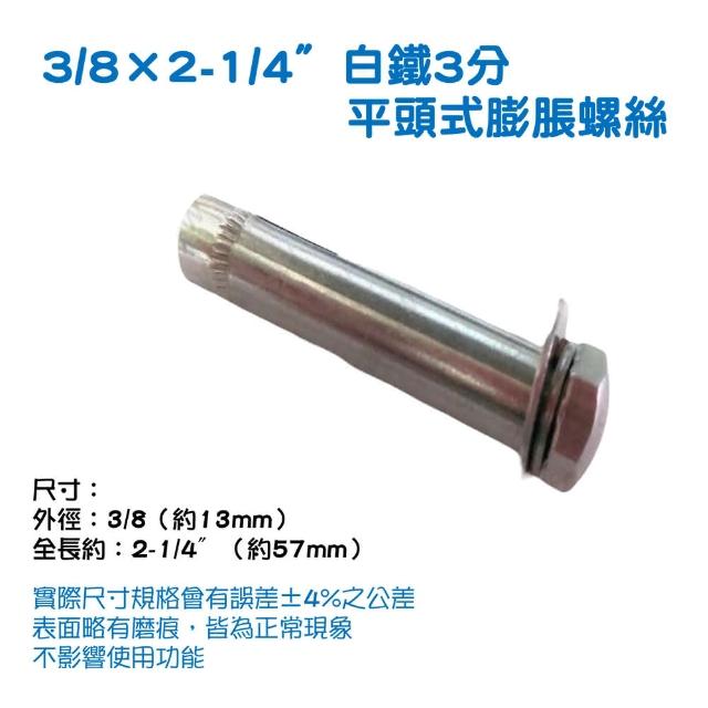 3分 不銹鋼平頭膨脹螺絲 50入(3/8 x 2-1/4〞 白鐵平頭式壁虎 固定螺絲)