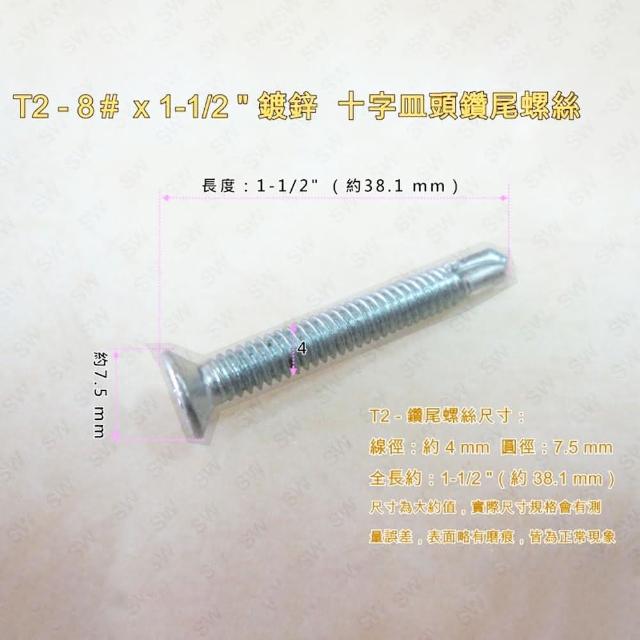 十字自攻螺 100入 電鍍螺絲釘(8# × 1-1/2〞平頭鑽尾螺絲 全牙皿頭螺絲釘)