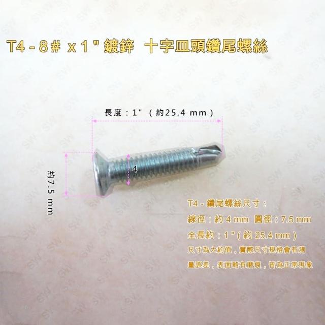 十字自攻螺 100入 電鍍螺絲釘(8# × 1 〞平頭鑽尾螺絲 全牙皿頭螺絲釘)