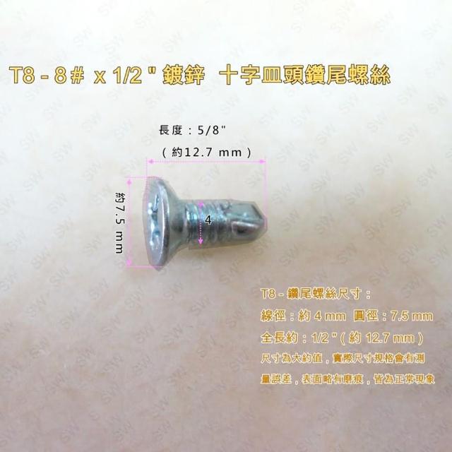 十字自攻螺 100入 電鍍螺絲釘(8# × 1/2 〞平頭鑽尾螺絲 全牙皿頭螺絲釘)