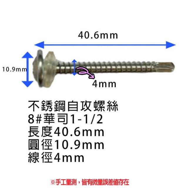 不銹鋼自攻螺絲 100入 8#華司1-1/2(白鐵自攻螺絲 大扁司頭)