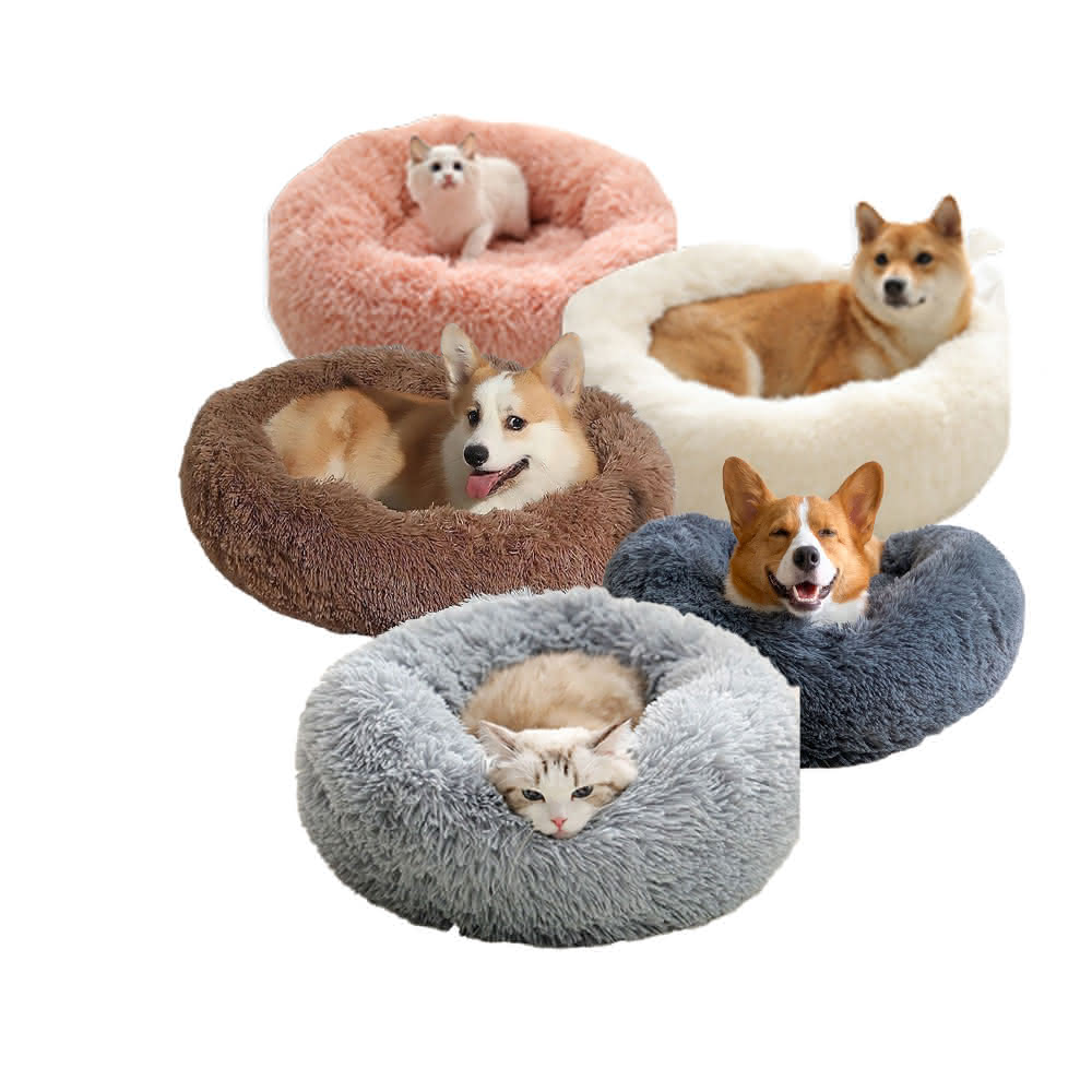 長毛絨圓形寵物窩 L號/外徑70cm 深度睡睡窩(底部防滑寵物睡墊 圓型床 貓窩/狗窩 優質PP棉睡窩)