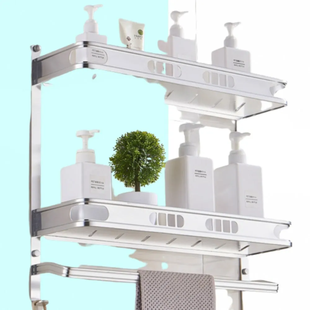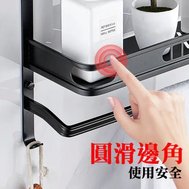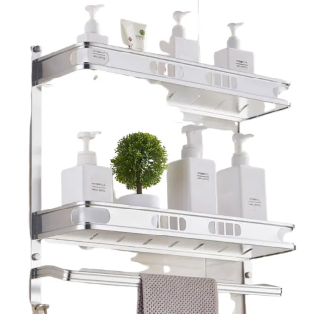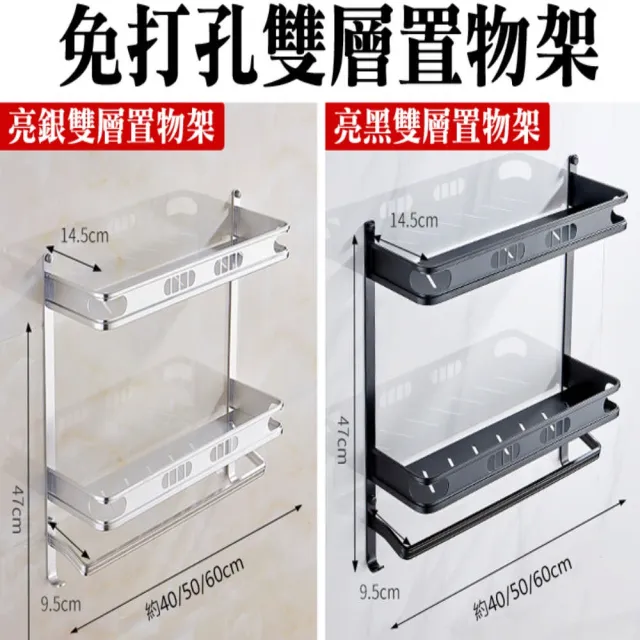 免打孔雙層毛巾架 銀色 40cm(免釘 浴室 置物架 毛巾架)