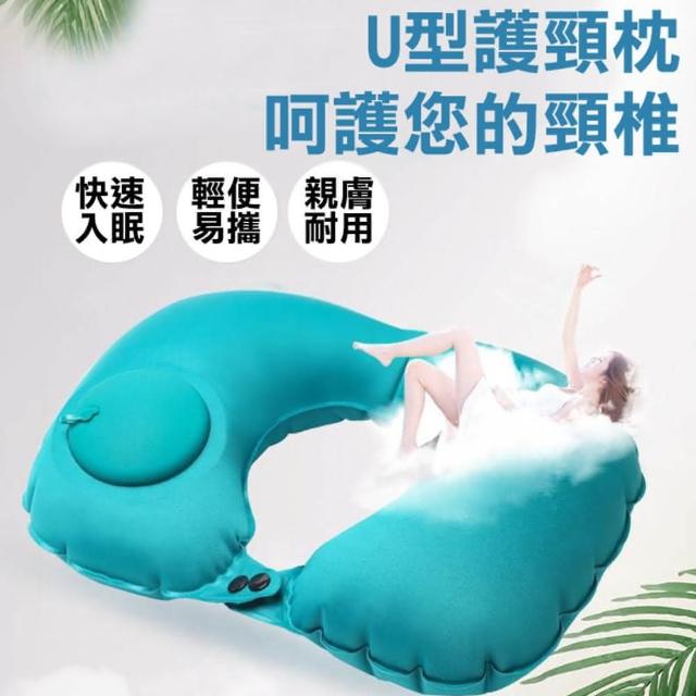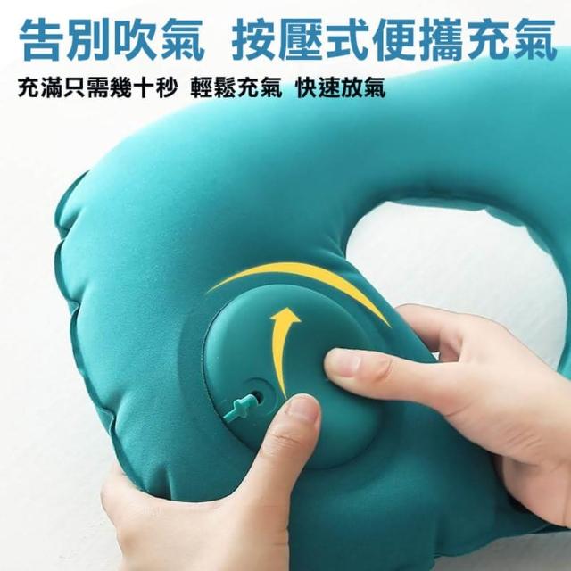 - 按壓式充氣枕頭 冰絲絨 U型枕