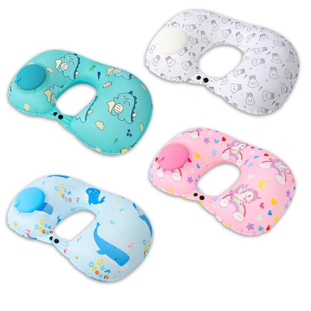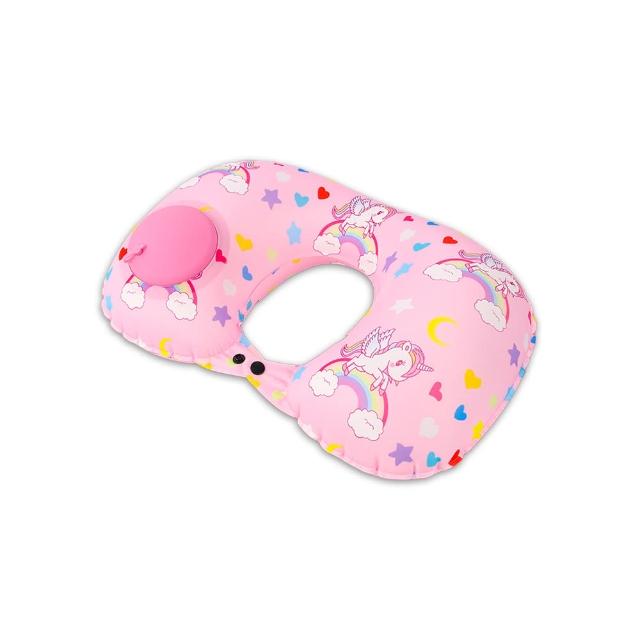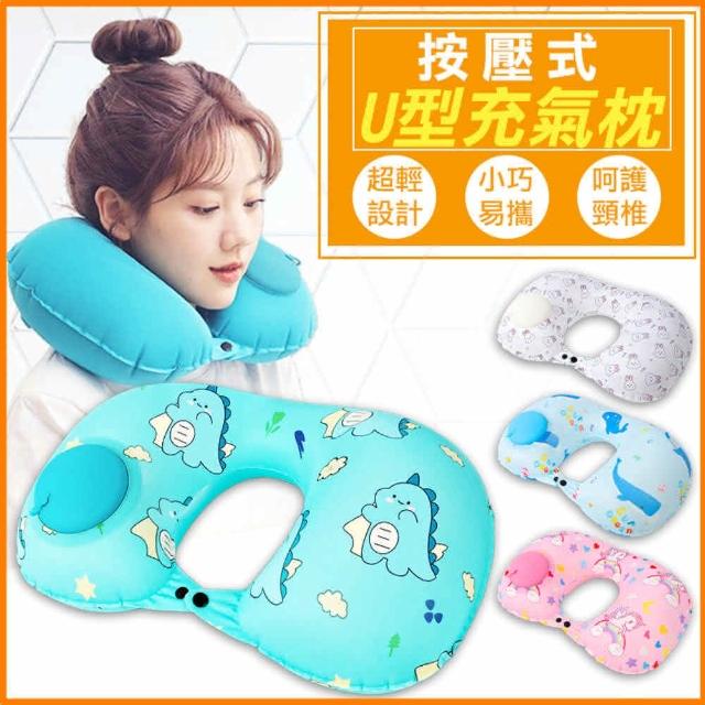 美升U型枕 按壓式充氣枕頭 附收納袋(卡通款 冰絲絨 U型枕頭 頸枕 車用靠枕 午睡枕)