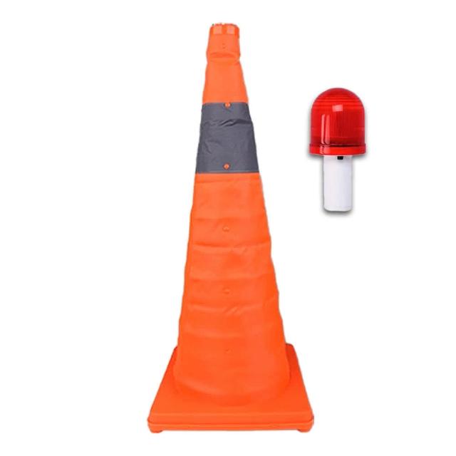 美升摺疊伸縮式反光交通錐-高70公分(帶警示燈款 摺疊三角錐 三角錐 伸縮路錐 安全錐 警示錐 伸縮三角錐)