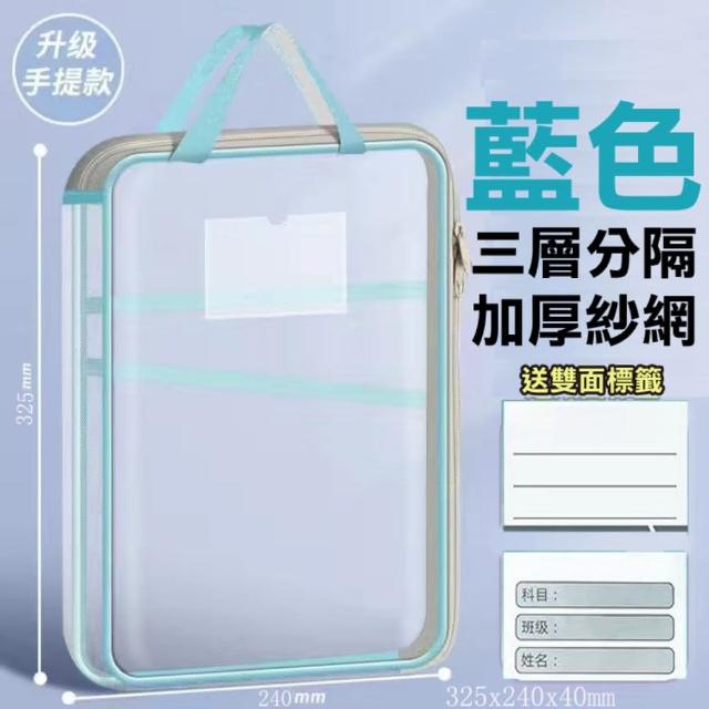 三層文件袋 特厚 補習袋 文具袋(L型拉鍊手提科目收納袋 分類文件袋)