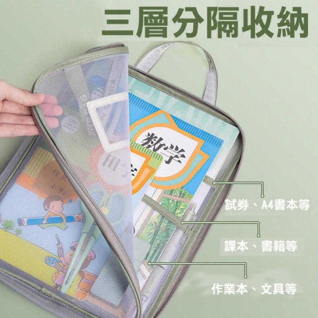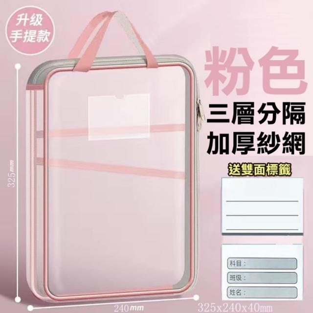 三層文件袋 特厚 補習袋 文具袋(L型拉鍊手提科目收納袋 分類文件袋)