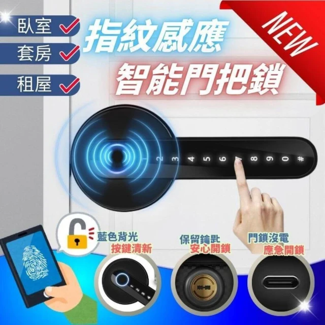 三合一智能門把鎖 智能鎖 門鎖 密碼鎖 智慧鎖 辦公室指紋鎖 房間門指紋鎖 家用球形指紋鎖(安裝簡單丨指紋鎖)