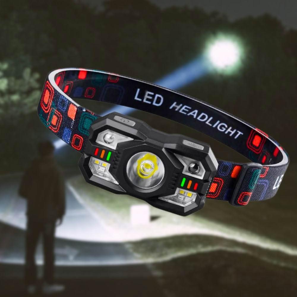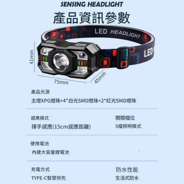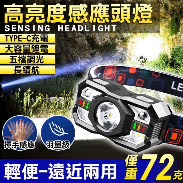 輕量級感應頭燈 工作頭燈 頭戴式照明燈 五檔調光 (USB充電頭燈 LED頭燈 登山 夜跑 夜釣)