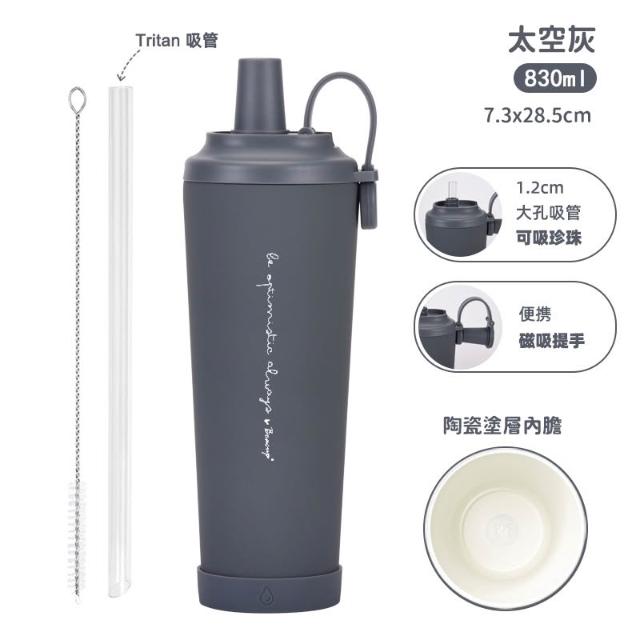 HOME GYM CLUB磁吸易潔珍奶保溫杯 BOACUP 保溫杯 830ML 陶瓷杯 吸管杯 保冰杯 隨行杯 冰壩杯 陶瓷塗層內瞻