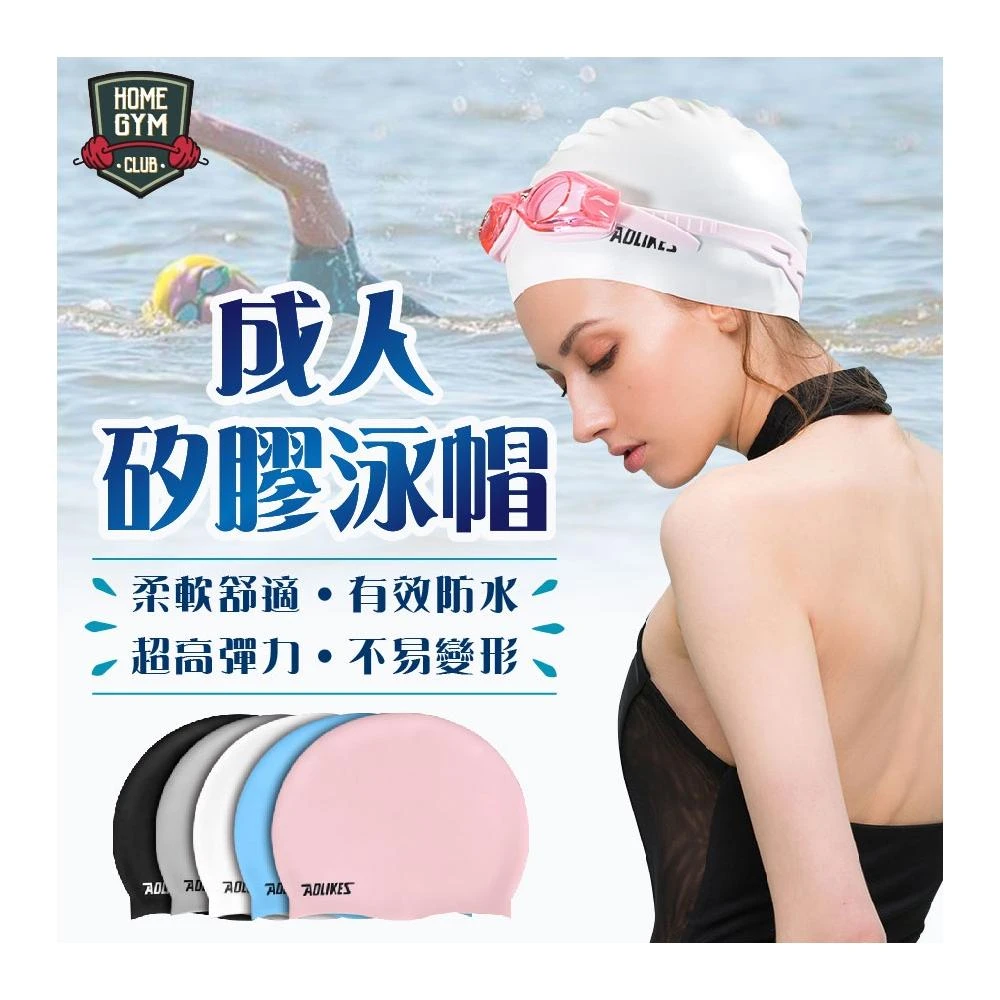 HOME GYM CLUB成人防水泳帽 矽膠泳帽 防水泳帽 泳帽 素色泳帽 防水 成人男女通用 水樂園 游泳 溫泉 水上運動 水上配件