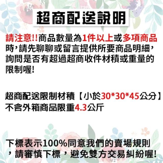 • 依照客戶指定配送之商品(約配商品)接獲訂單逾30日您未通知出貨及受領商品,為了保障您的權益,商店得取消訂單,請客戶重新下單購買。
