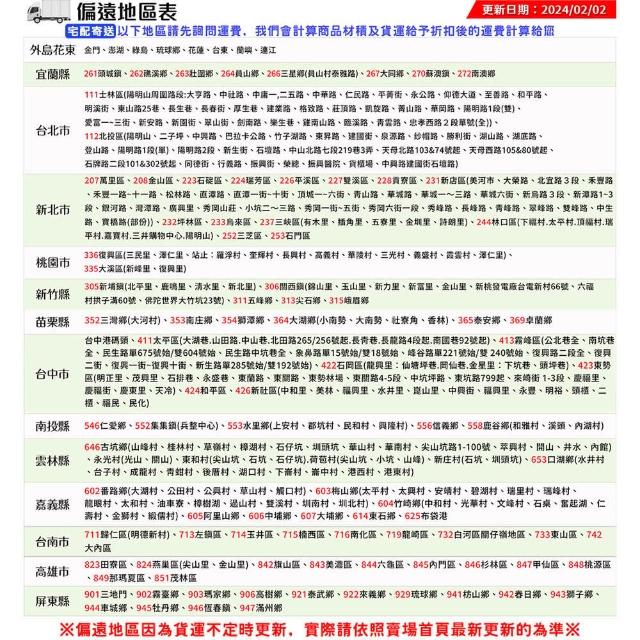 - 商店所提供的產品配送區域範圍目前僅限台灣本島。
