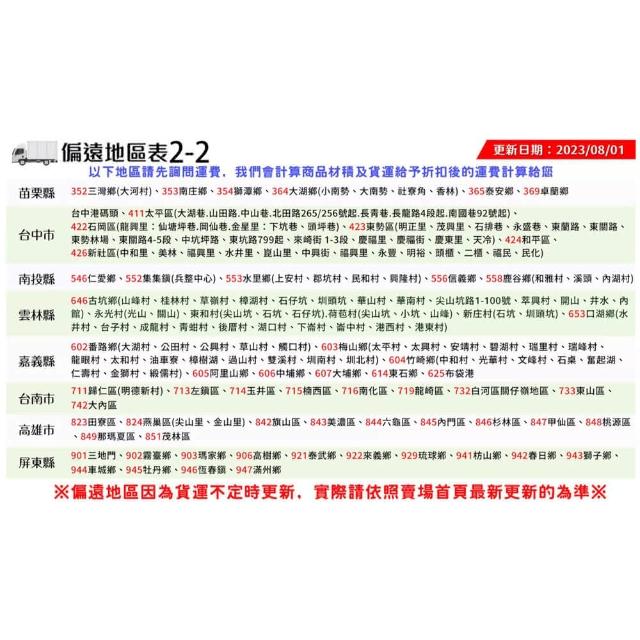 - 商店所提供的產品配送區域範圍目前僅限台灣本島。