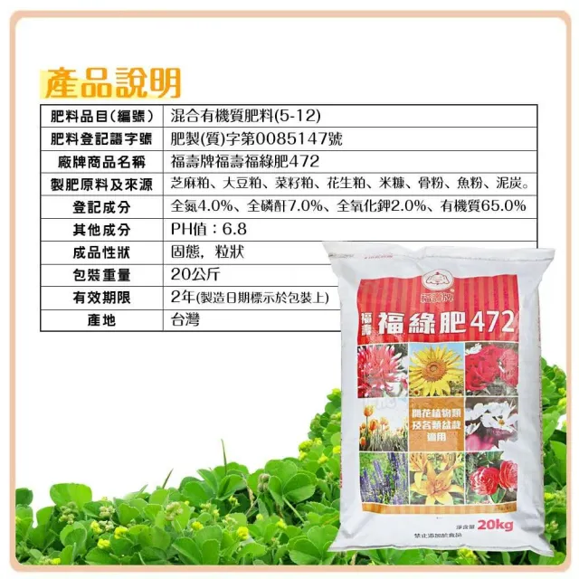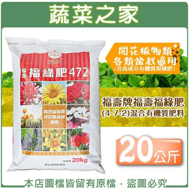 福壽福壽牌福壽福綠肥4-7-2混合有機質肥料 20公斤營養肥料複合肥料 基肥、追肥均可使用
