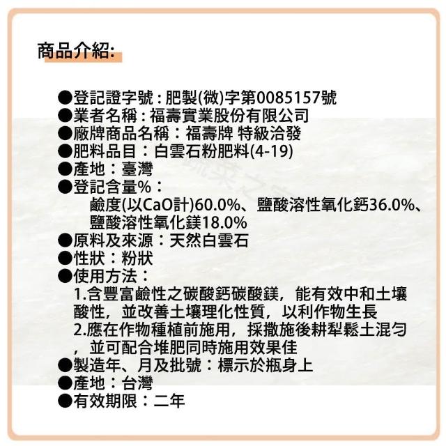 福壽福壽牌特級洽發鈣加美20公斤鈣鎂肥肥料 苦土石灰改善酸性土壤 能幫助果實生長 植物顏色豔麗