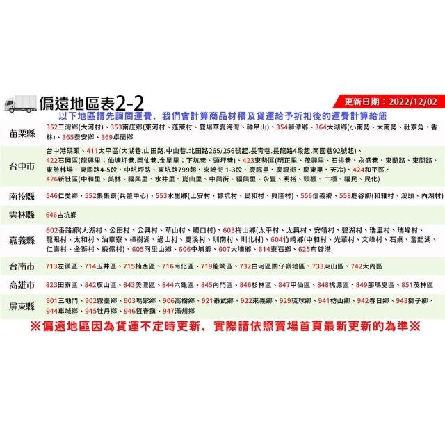 - 商店所提供的產品配送區域範圍目前僅限台灣本島。