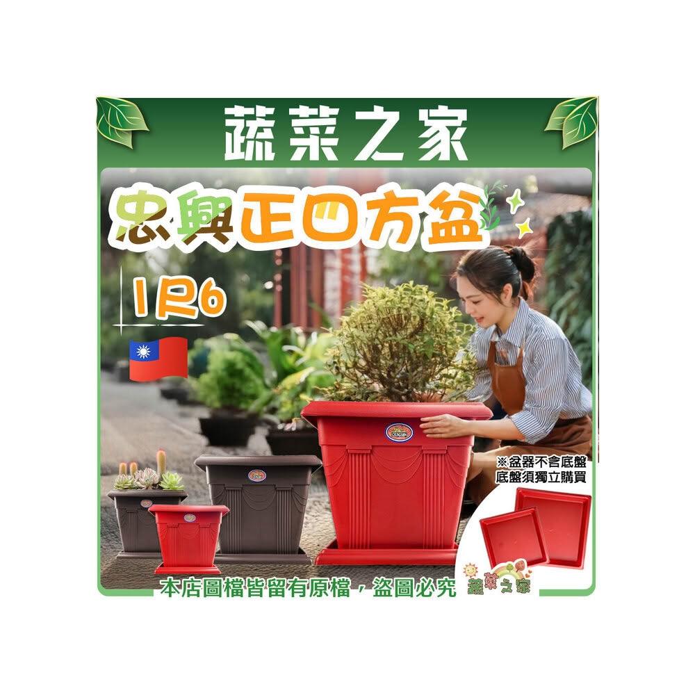 蔬菜之家忠興正四方盆1尺6-磚紅色、棕色可加購水盤 台灣製 四方盆 花盆 塑膠花盆 方盆 多肉盆 正方盆
