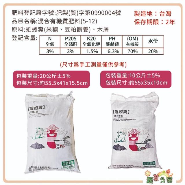 蔬菜之家四季寶5號 蚯蚓糞肥 米糠 豆粕餵養、木屑20公斤