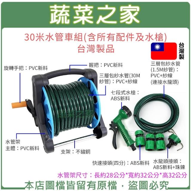 蔬菜之家30米水管車組含所有配件及七段式水槍.台灣製品