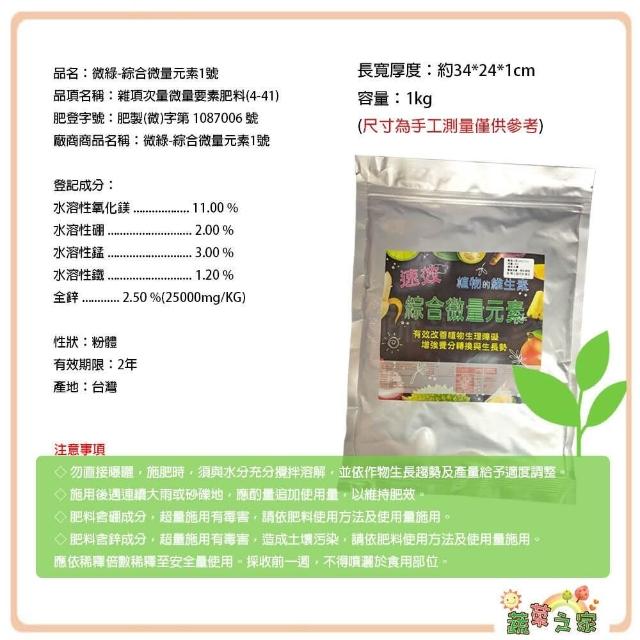 蔬菜之家綜合微量元素1號1kg水溶性速效型氧化鎂 硼 錳 鐵 鋅 預防生長障礙
