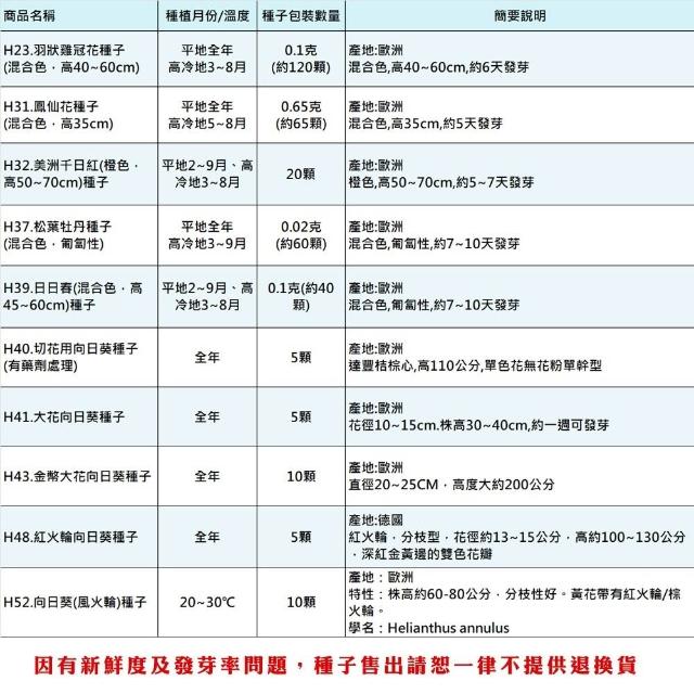 蔬菜之家全年及夏季可栽培花卉種子系列各包裝數量詳見內文及圖片說明向日葵 百日草 萬壽菊 雞冠花 大理花