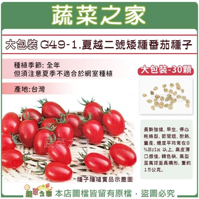 蔬菜之家大包裝G49-1.夏越二號矮種番茄種子30顆節間短、耐熱、 豐產,果皮薄,口感 佳,轉色快