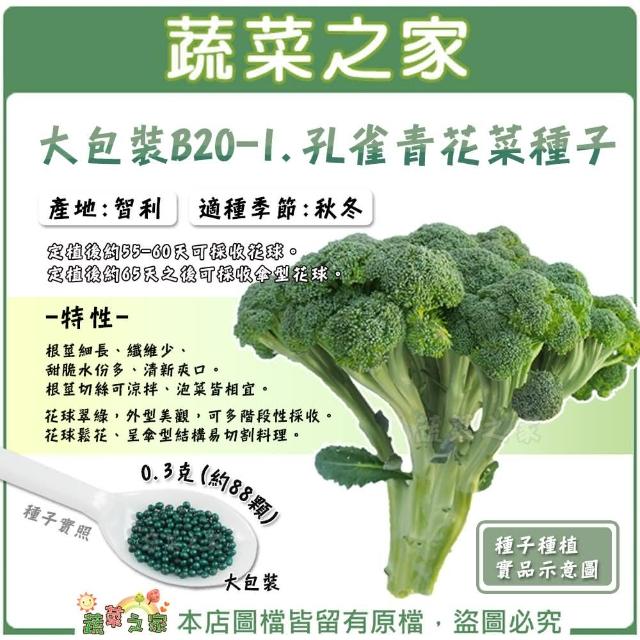 蔬菜之家大包裝B20-1.孔雀青花菜種子 0.3克約88顆有藥劑處理 花球翠綠,可多階段性採收