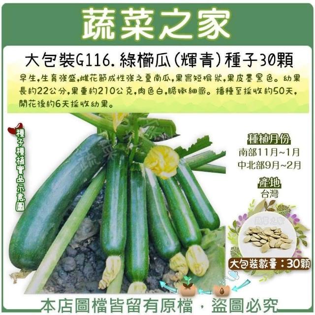 蔬菜之家大包裝G116.綠櫛瓜輝青種子30顆早生 生育強盛 雌花節成性強之夏南瓜 果實短棍狀