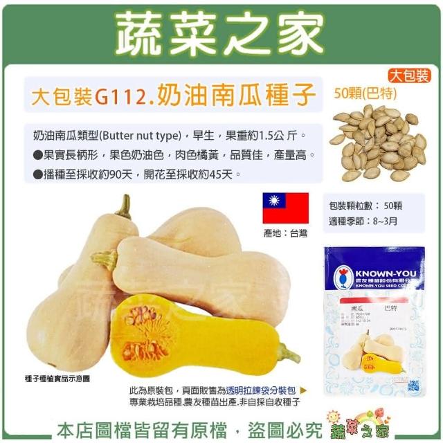 蔬菜之家大包裝G112.奶油南瓜種子50顆巴特早生、品質優良之奶油南瓜 肉色橘黃,品質佳,產量高