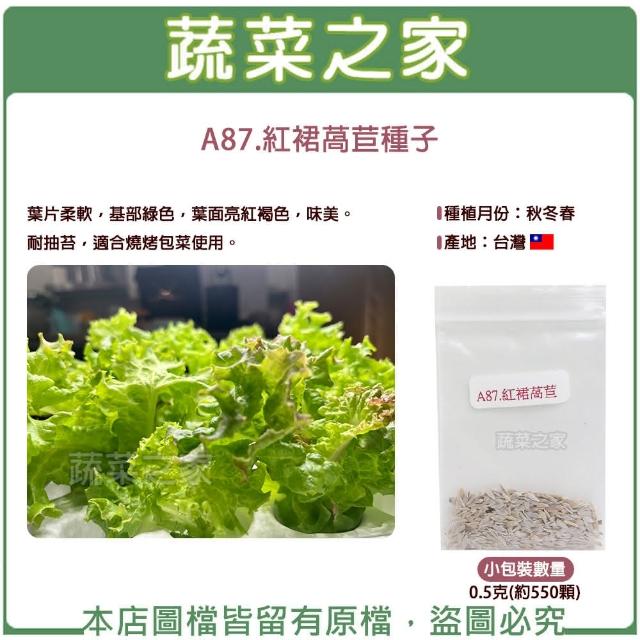 蔬菜之家A87.紅裙萵苣種子0.5克(約550顆)//葉片柔軟,基部綠色,葉面亮紅褐色 蔬菜種子