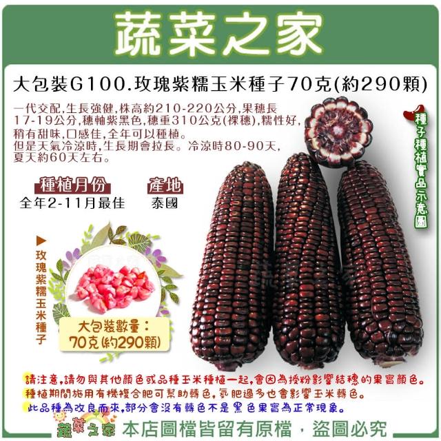 蔬菜之家大包裝G100.玫瑰紫糯玉米種子70克(約290顆)(有藥劑處理)(F1,生長強健)