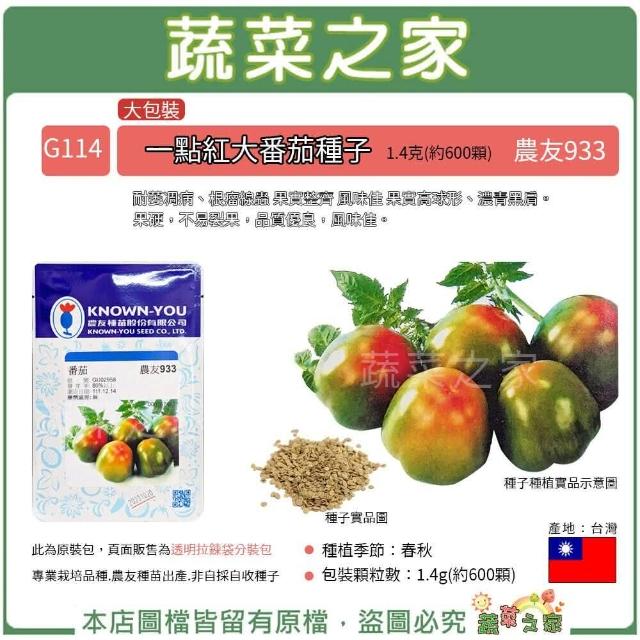 蔬菜之家大包裝G114.一點紅大番茄種子1.4克約600顆農友933 耐萎凋病、根瘤線蟲 果實整齊