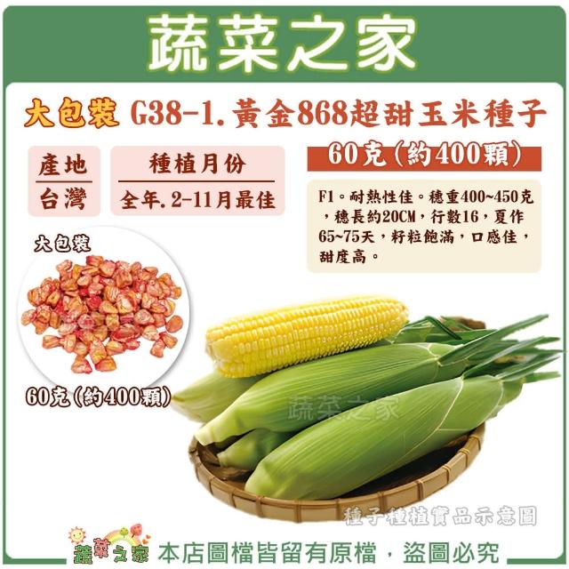 蔬菜之家大包裝G38-1.黃金868超甜玉米種子60克約400顆有藥劑處理籽粒飽滿,口感佳, 甜度高