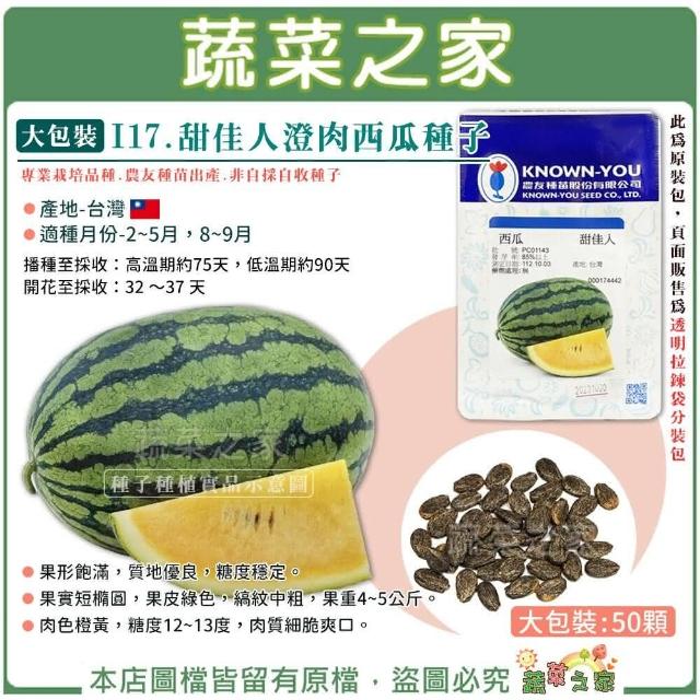蔬菜之家大包裝I17.甜佳人澄肉西瓜種子50顆肉質佳,肥大好,產量高 糖度穩定 肉質細脆爽口