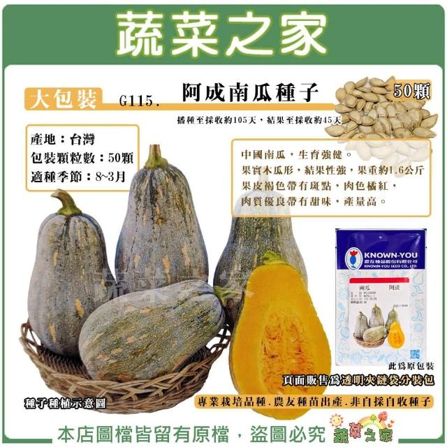 蔬菜之家大包裝G115.阿成南瓜種子50顆專業栽培品種.農友種苗出產.非自採自收種子結果力強,果實整齊