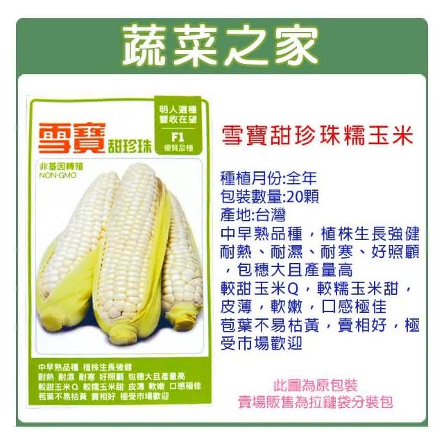 蔬菜之家G34.雪寶甜珍珠糯玉米種子20顆(有藥劑處理)(耐熱、耐濕、耐寒,包穗大且產量高.蔬菜種子)