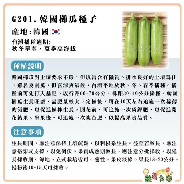 蔬菜之家大包裝G201.韓國櫛瓜種子20顆(有藥劑處理)F1 韓國蔓性櫛瓜 韓國夏南瓜種子