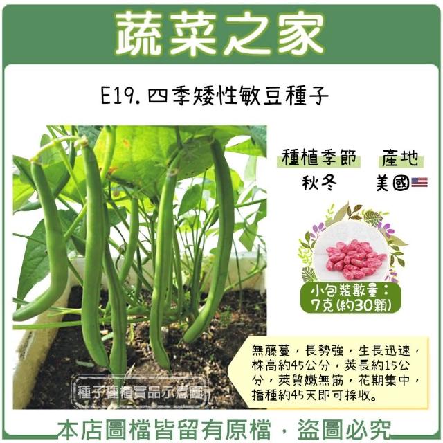 蔬菜之家E19.四季矮性敏豆種子7克約30顆有藥劑處理無藤蔓,長勢強,生長迅速,株高約45公分