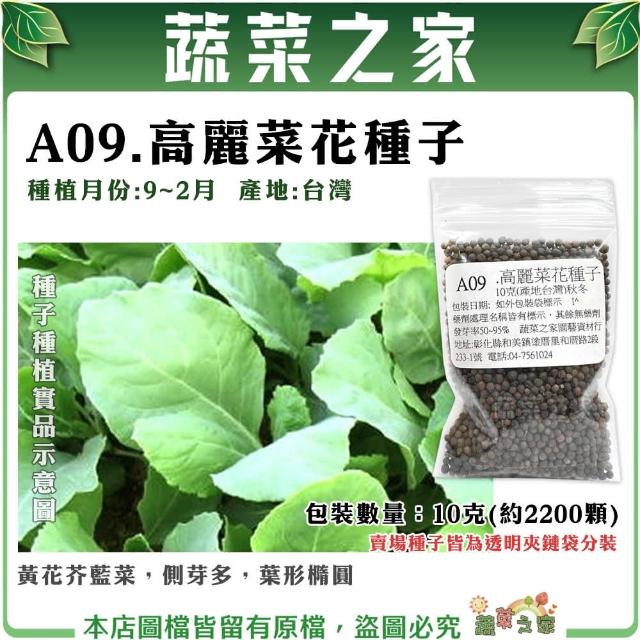 蔬菜之家A09.高麗菜花種子10克 (約2200顆)(黃花芥藍菜,側芽多,葉形橢圓 )芥蘭菜 葉菜類種子